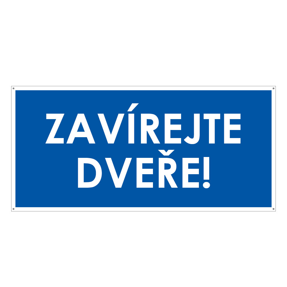 ZAVÍREJTE DVEŘE!, modrá, plast s dírami 2 mm 190x90 mm