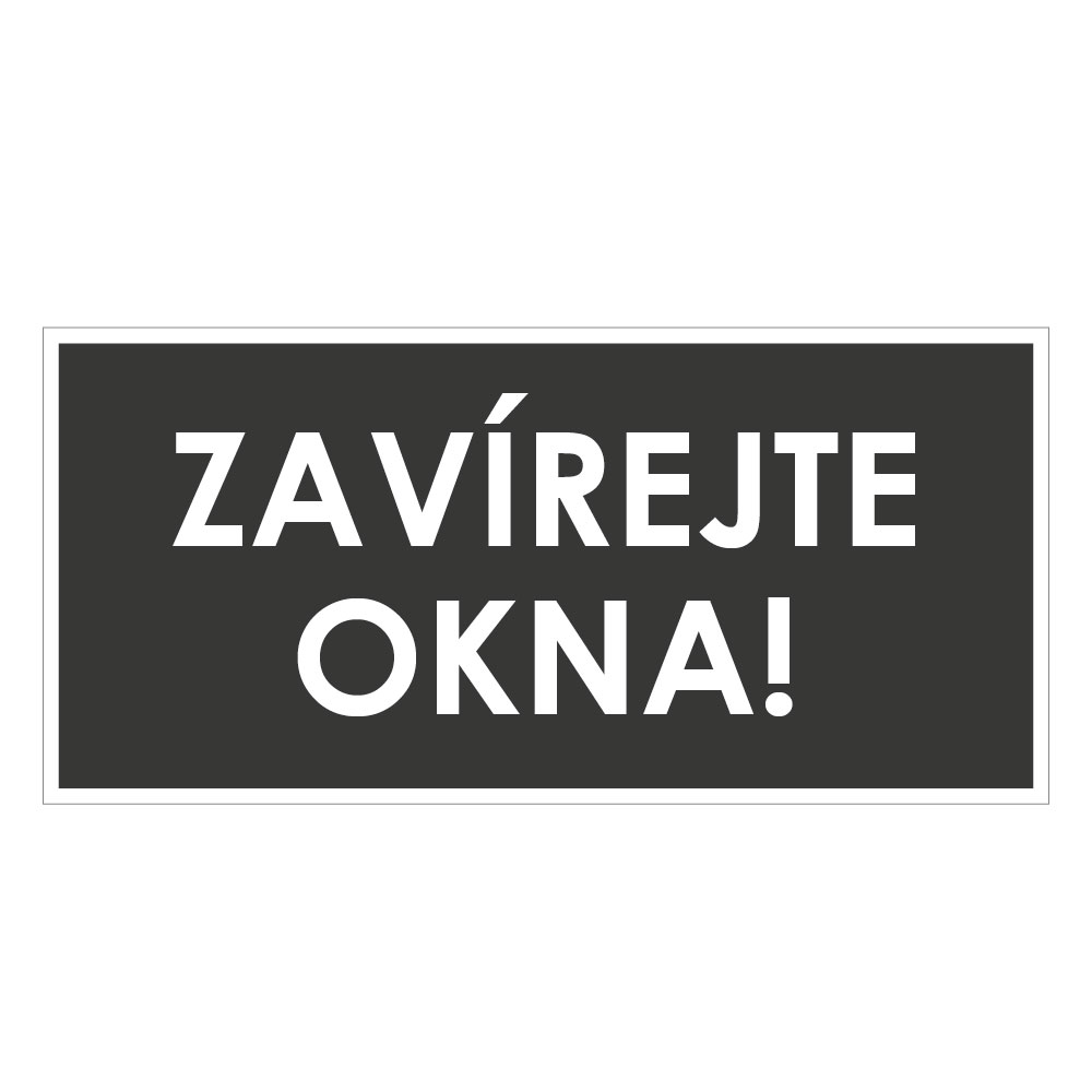 ZAVÍREJTE OKNA!, šedá, plast 1 mm 190x90 mm