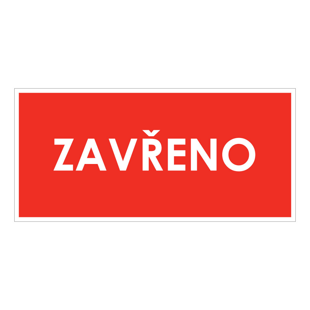ZAVŘENO, červená, plast 2 mm 190x90 mm