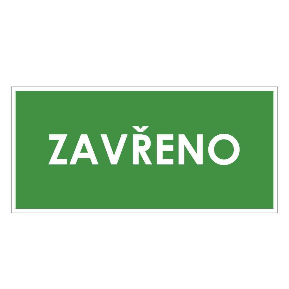 ZAVŘENO, zelená, plast 1 mm 190x90 mm