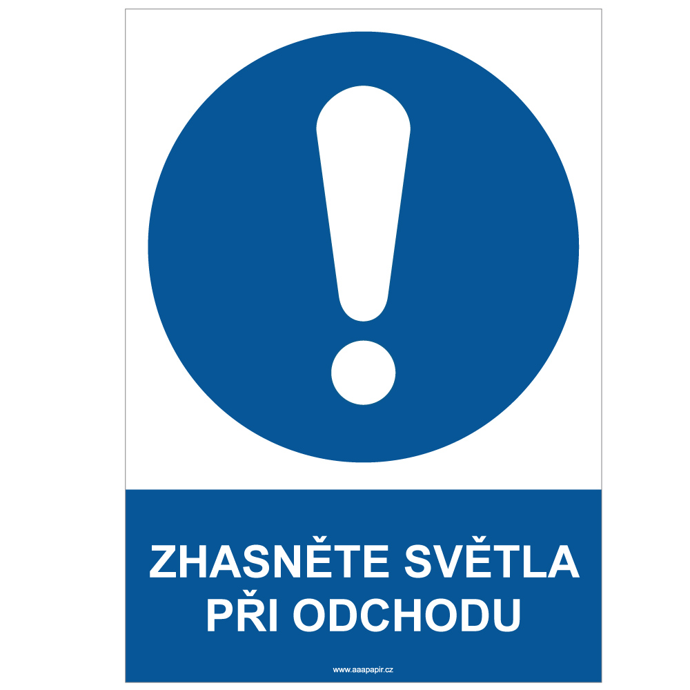 ZHASNĚTE SVĚTLA PŘI ODCHODU - bezpečnostní tabulka, plast A4, 0,5 mm
