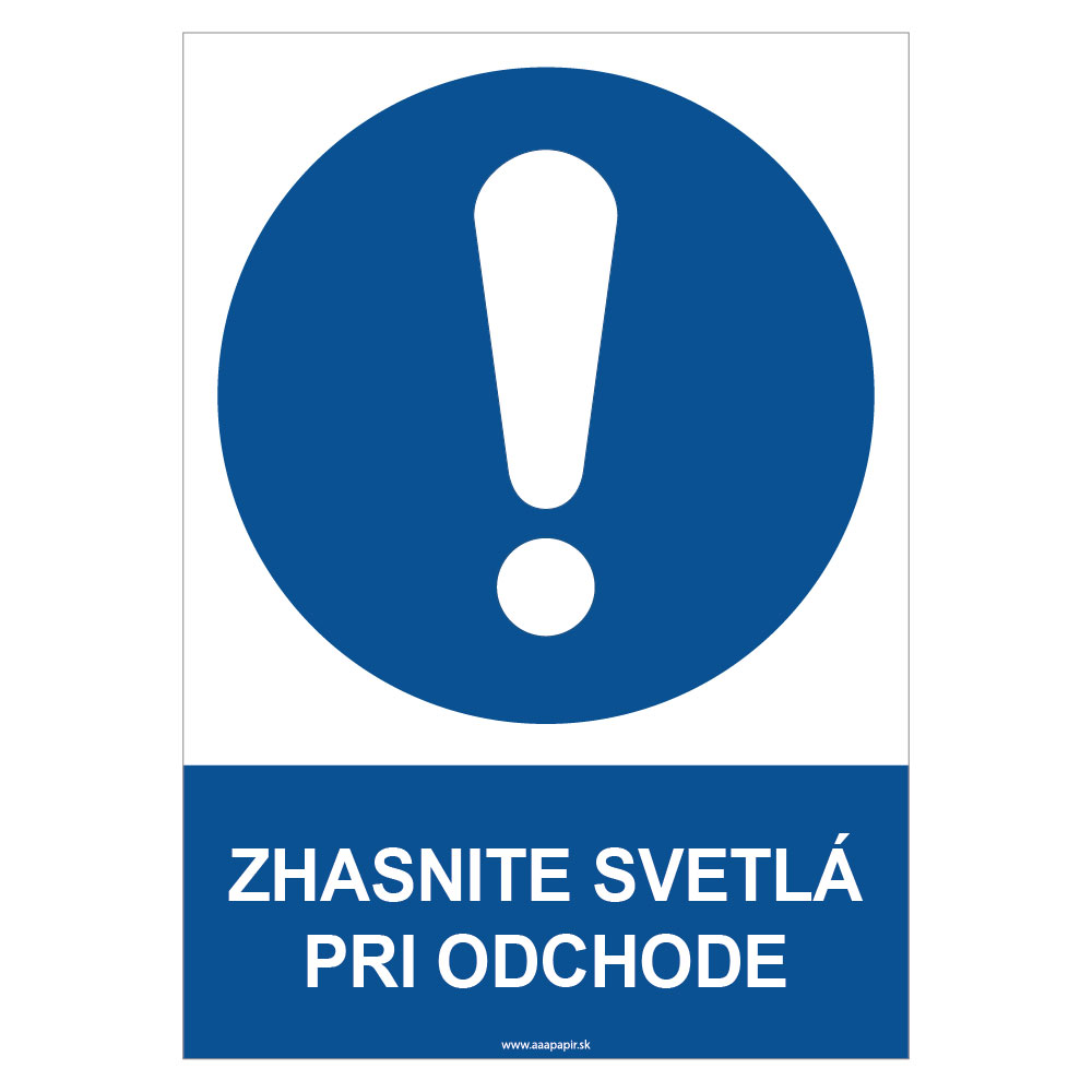 Zhasnite svetlá pri odchode - bezpečnostná tabuľka, plast 0,5 mm - A4
