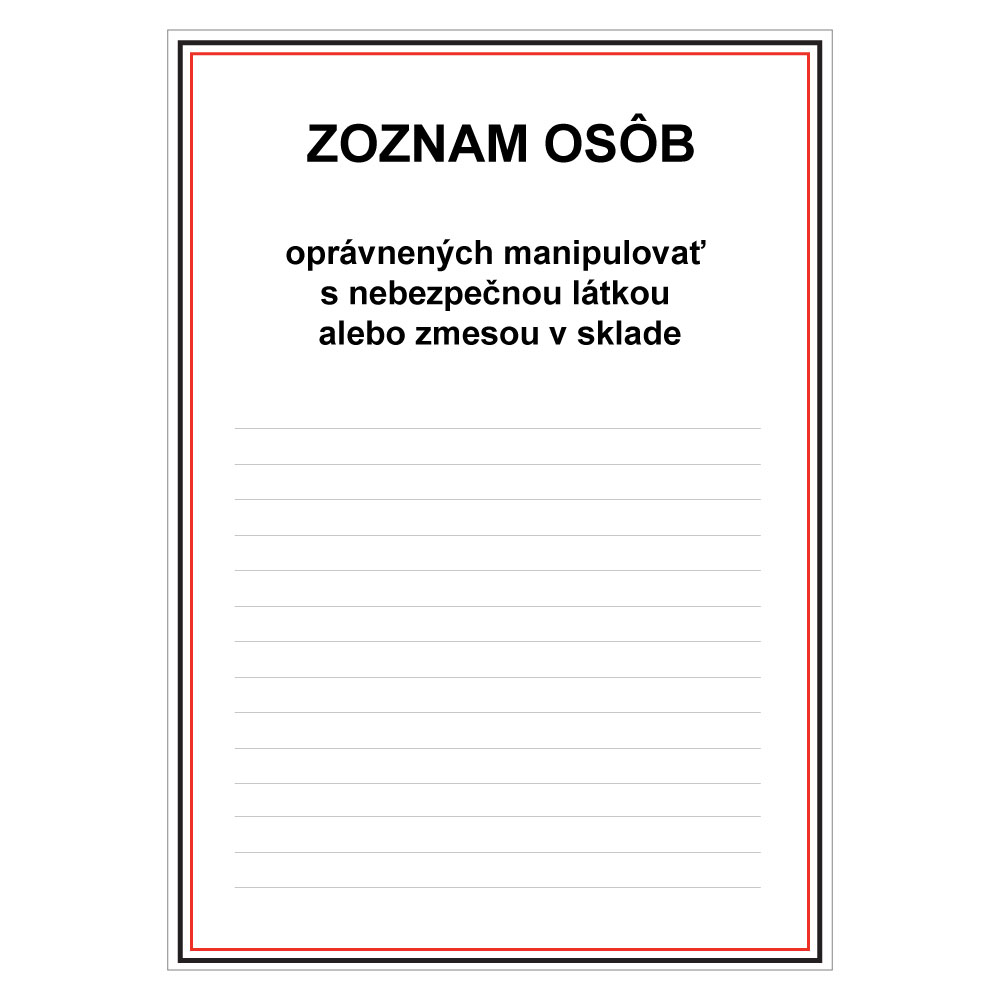 Zoznam osôb oprávnených manipulovať, plast 2mm 210x297mm